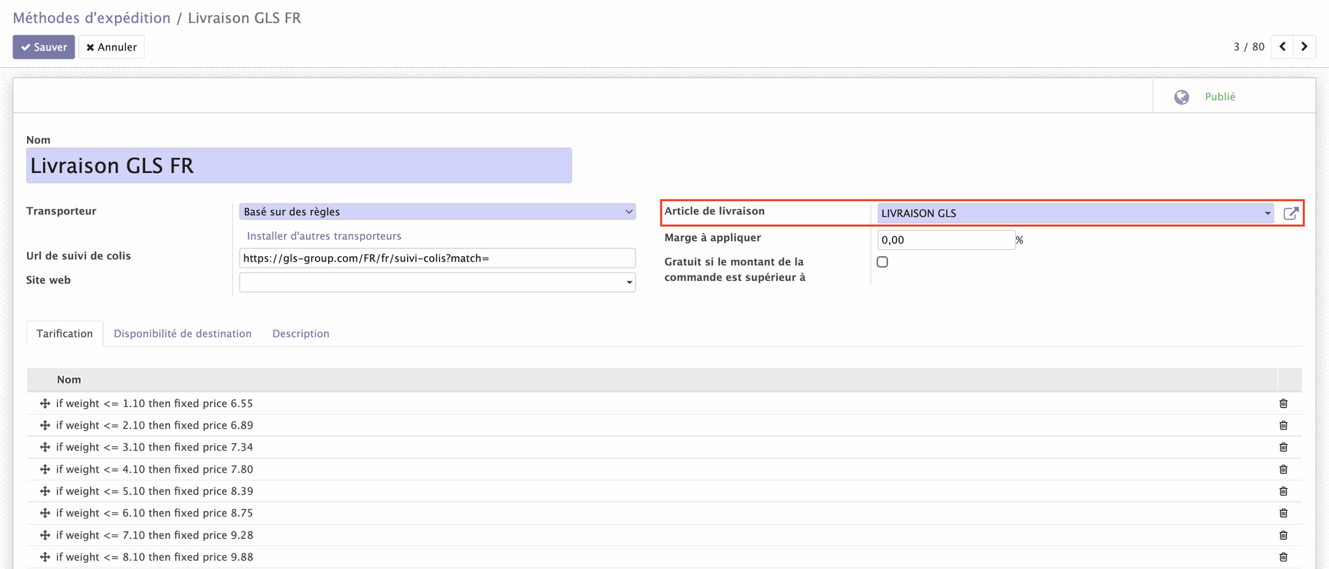 2. Paramétrage de la méthode d'expédition