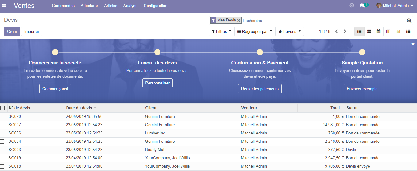 À savoir : L'aspect de vos devis est administrable dans Odoo